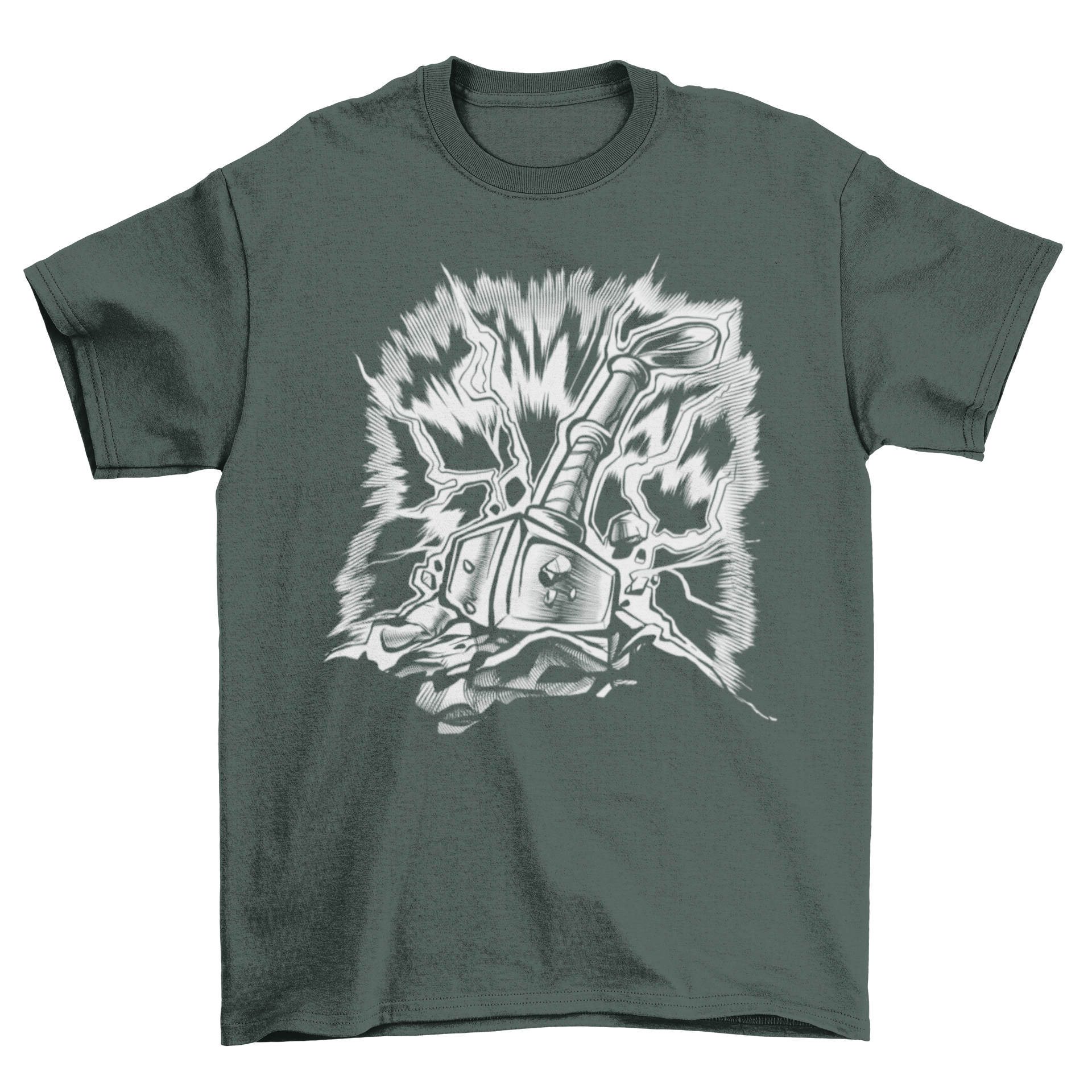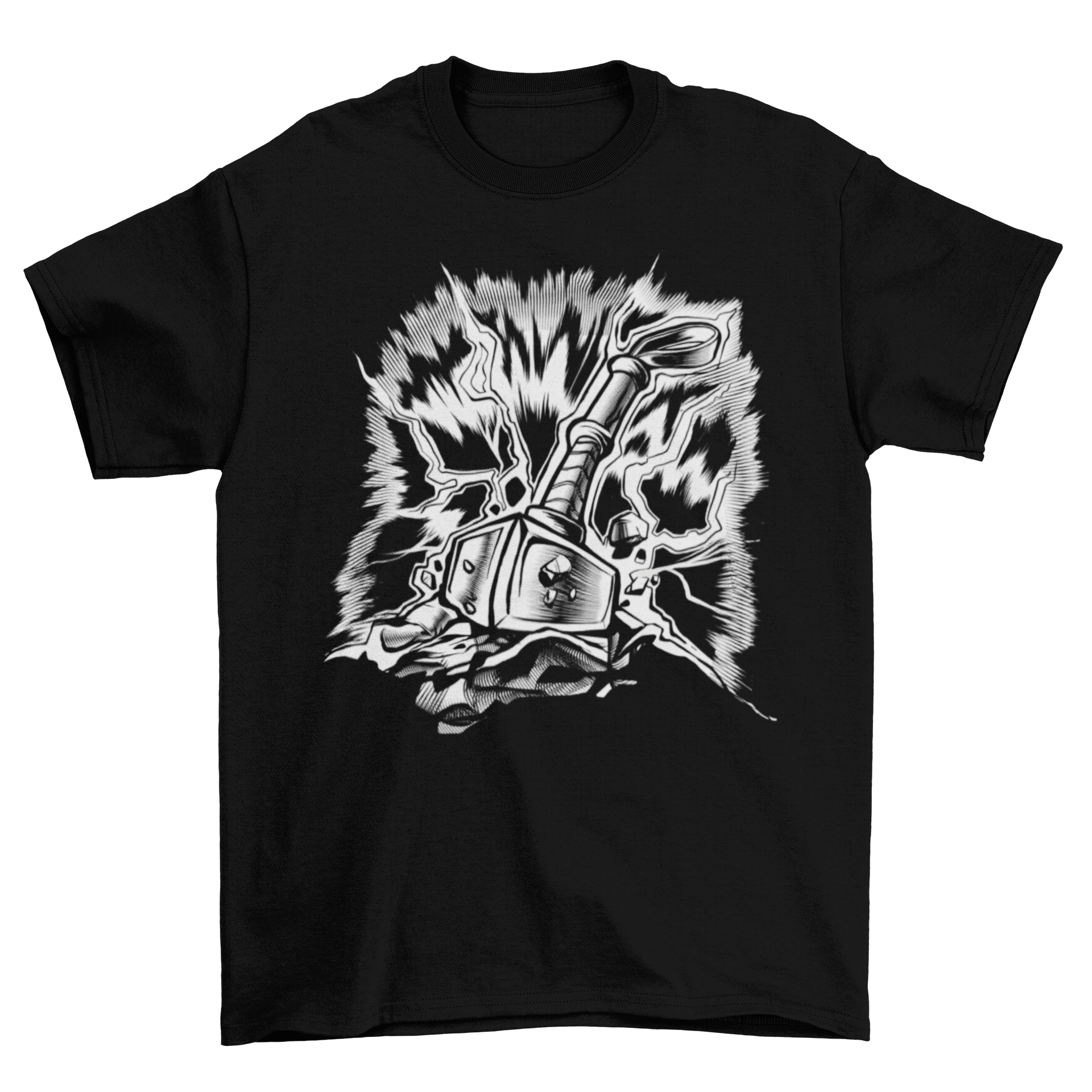 Introducing our Unique Fashion Viking Hammer T-Shirt, a must-have for fans of Norse mythology and the legendary god Thor. This striking design features a detailed illustration of Thor's hammer, known as Mjölnir, depicted in the act of striking a surface. The intricate artwork captures the essence of Viking culture and the power associated with this iconic weapon.