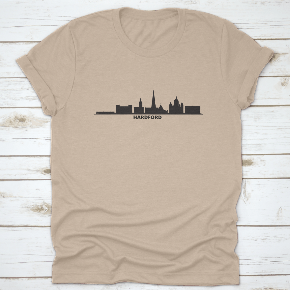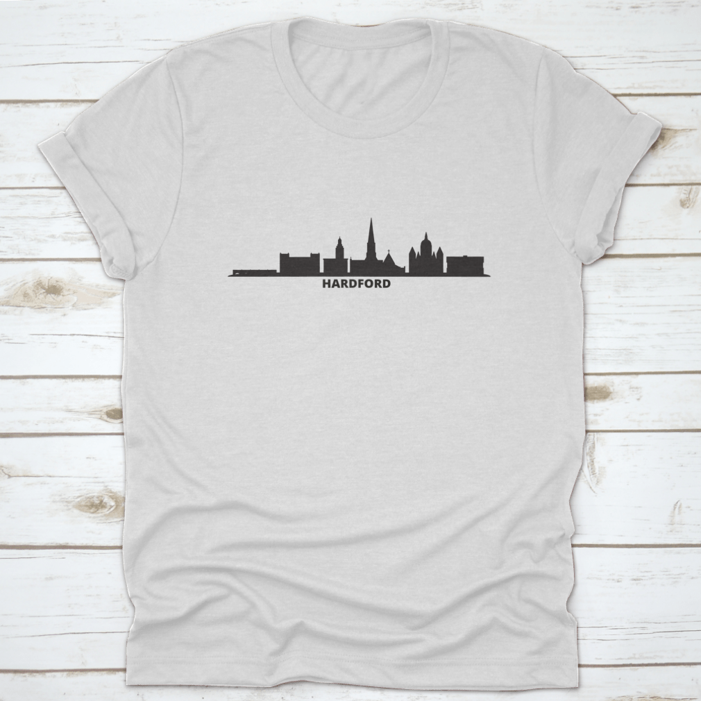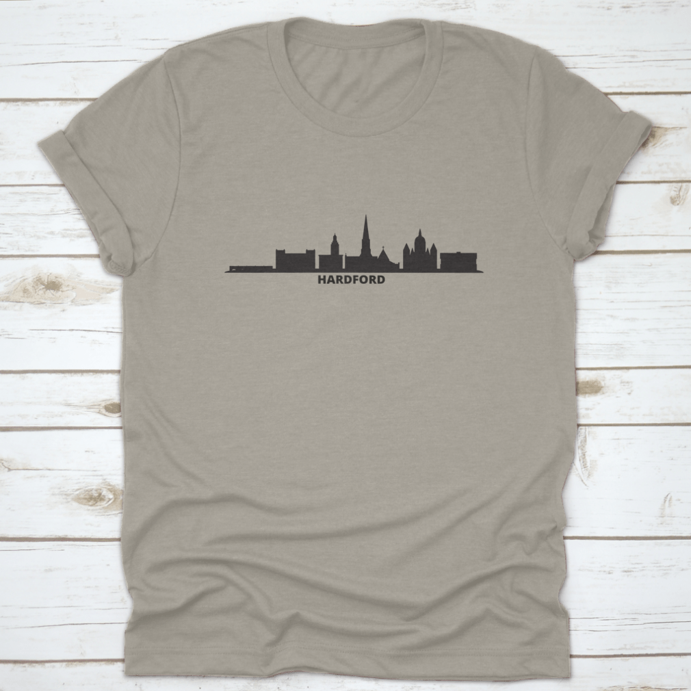 A stylish t-shirt featuring the Hartford City skyline design, made from 100% cotton with a classic fit.