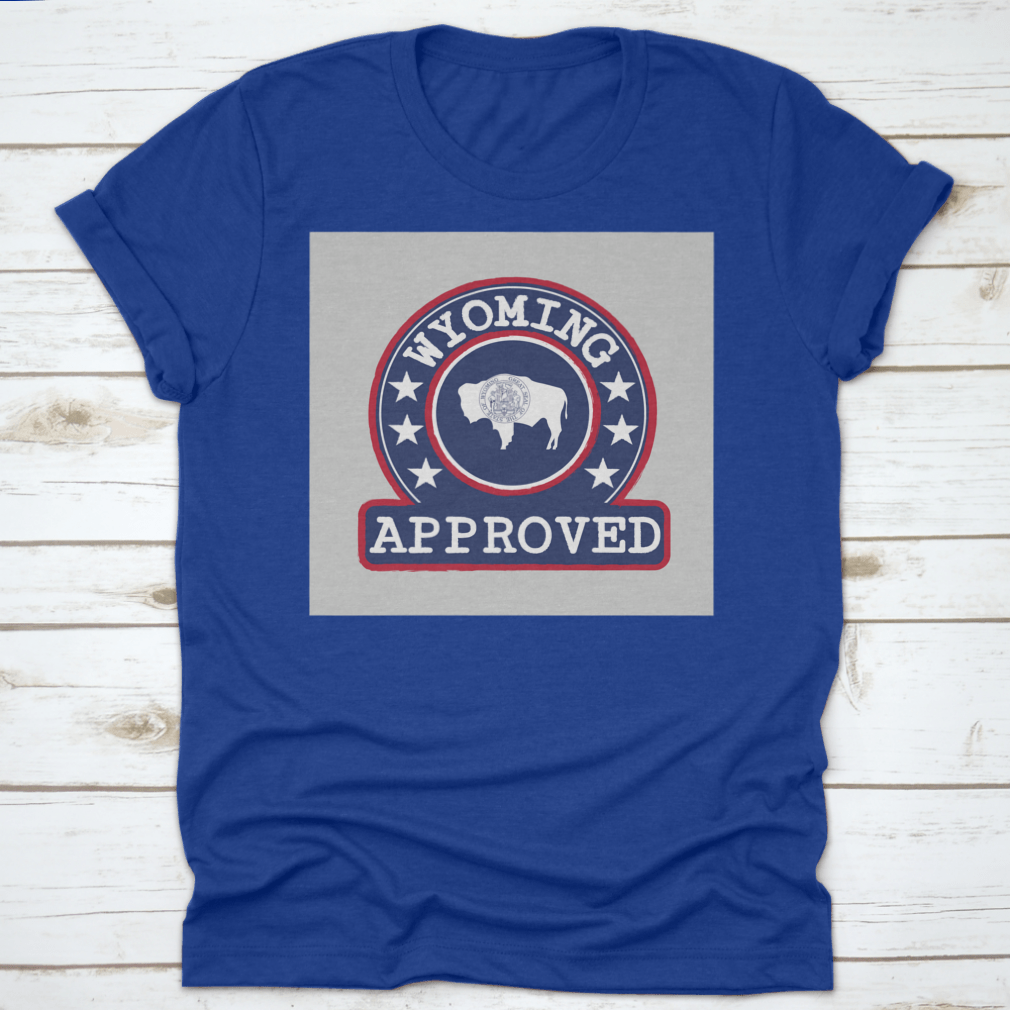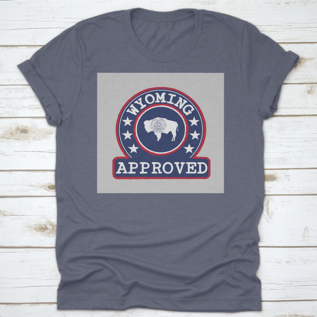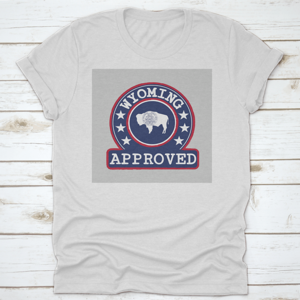 Introducing our Vector Stamp Of Approved Logo With Wyoming Flag In The Round Shape, a unique apparel piece that combines style and state pride. Made from high-quality materials, this product is designed for comfort and durability, making it an ideal choice for casual outings or everyday wear.