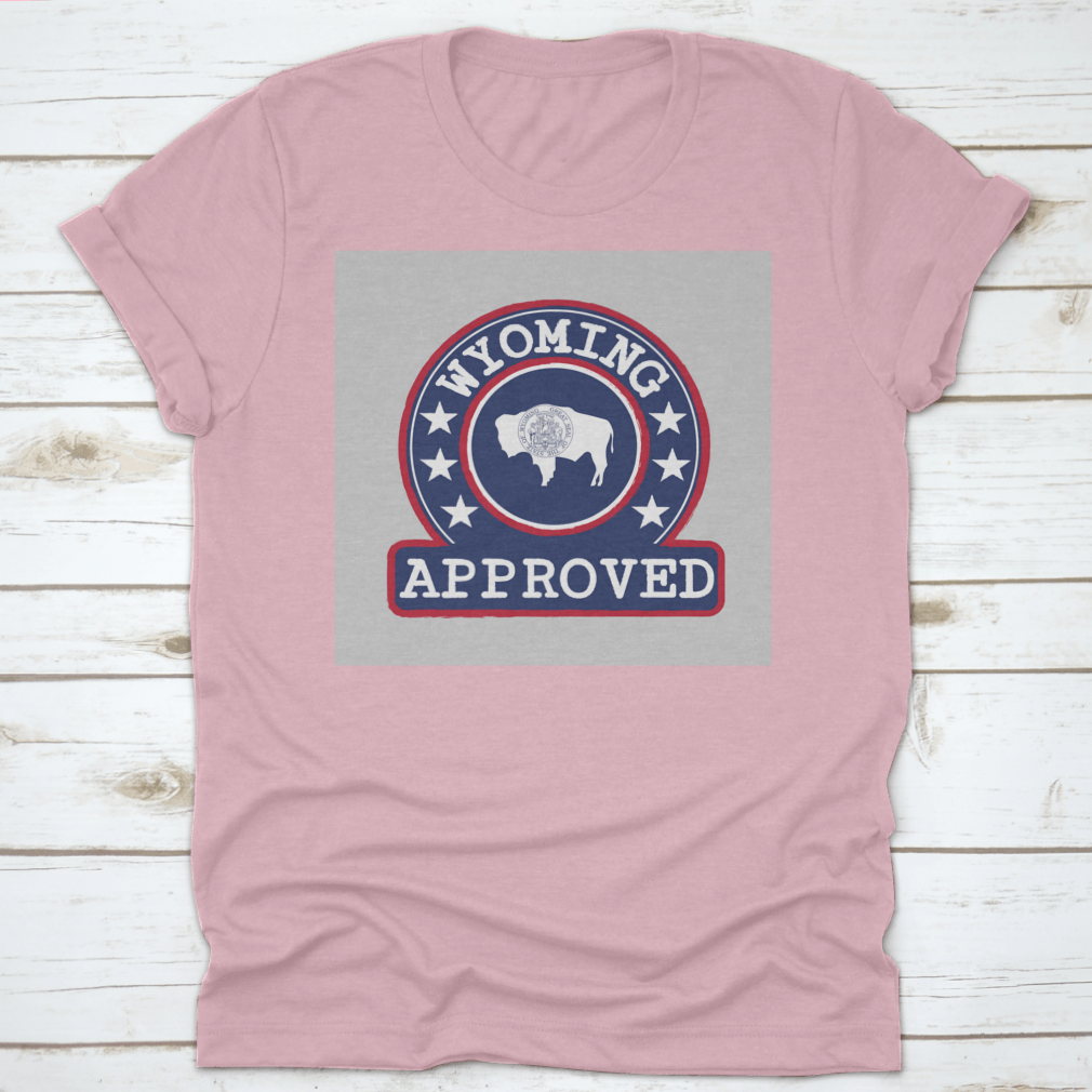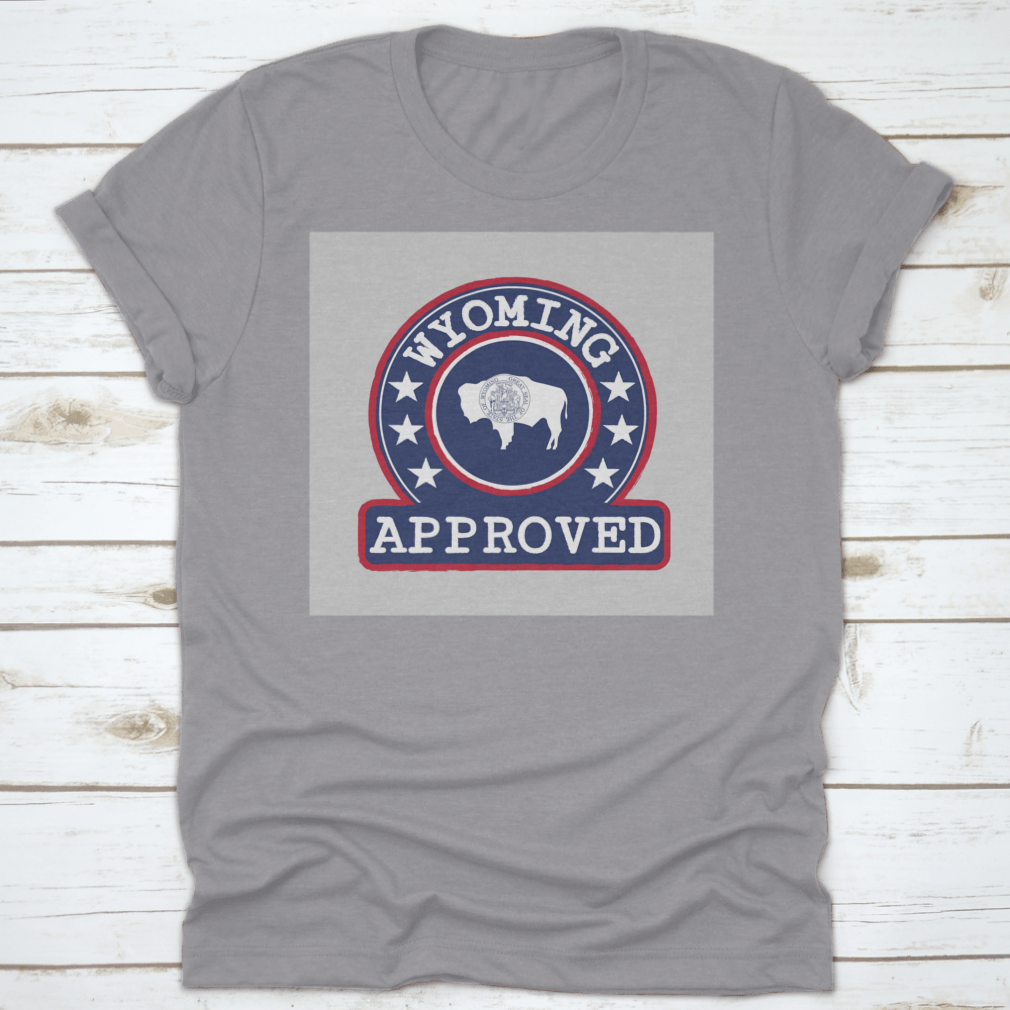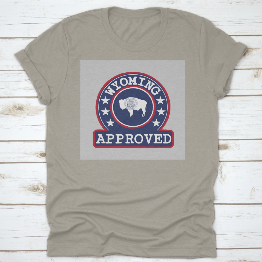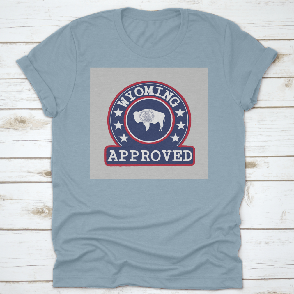 Introducing our Vector Stamp Of Approved Logo With Wyoming Flag In The Round Shape, a unique apparel piece that combines style and state pride. Made from high-quality materials, this product is designed for comfort and durability, making it an ideal choice for casual outings or everyday wear.