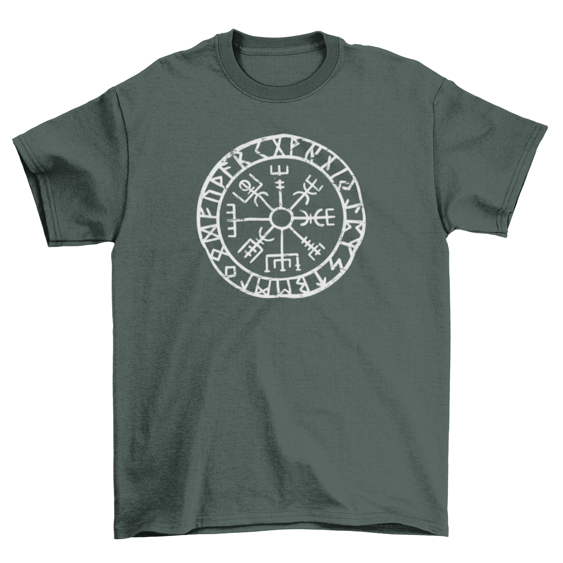 The Vegvisir, often referred to as the Viking compass, is a symbol from Icelandic magical texts. It is said that if a person carries the Vegvisir, they will never lose their way, even in storms or bad weather. This makes it a powerful emblem for those who seek direction and clarity in their lives. Wearing the Vegvisir compass t-shirt allows you to carry this symbol of guidance with you wherever you go.