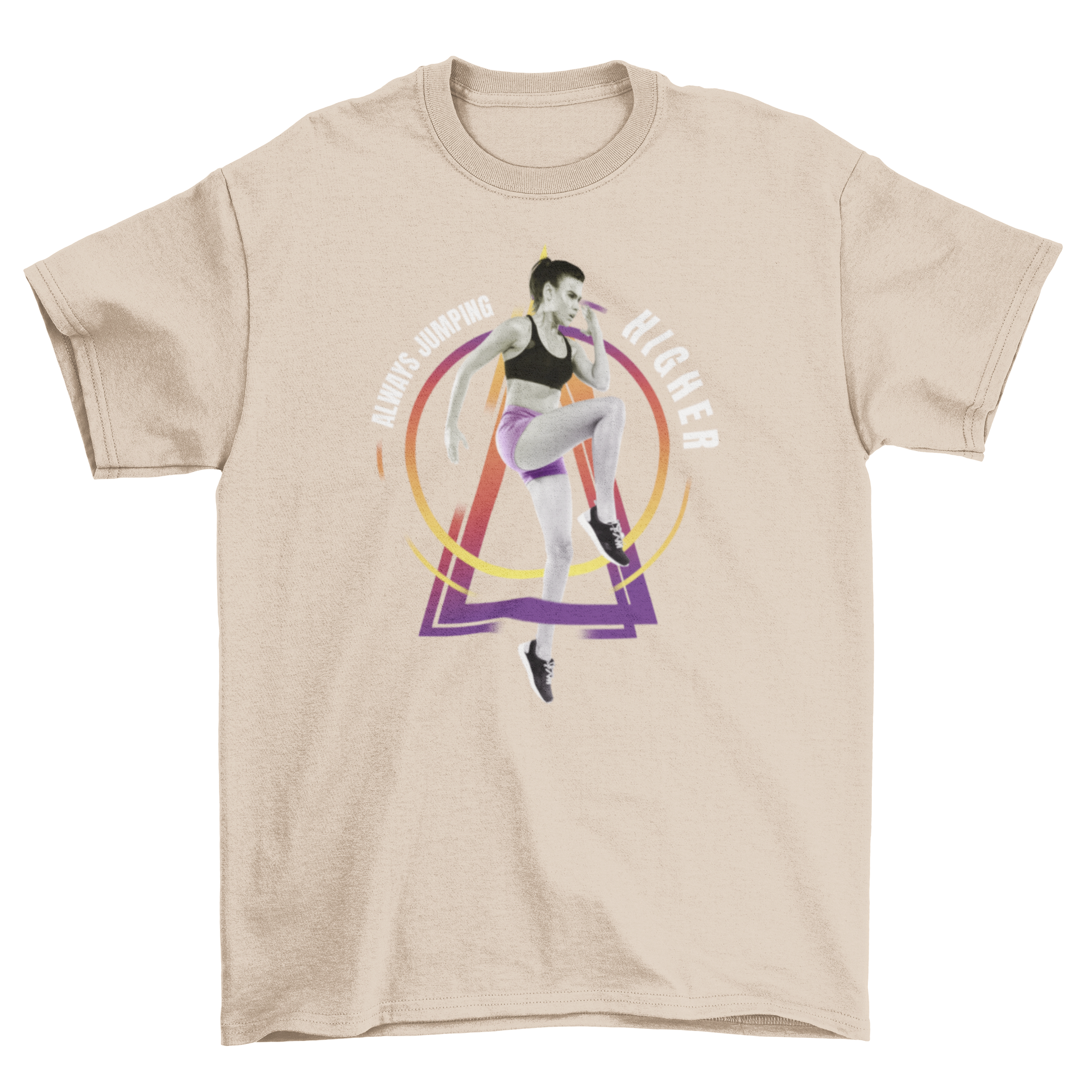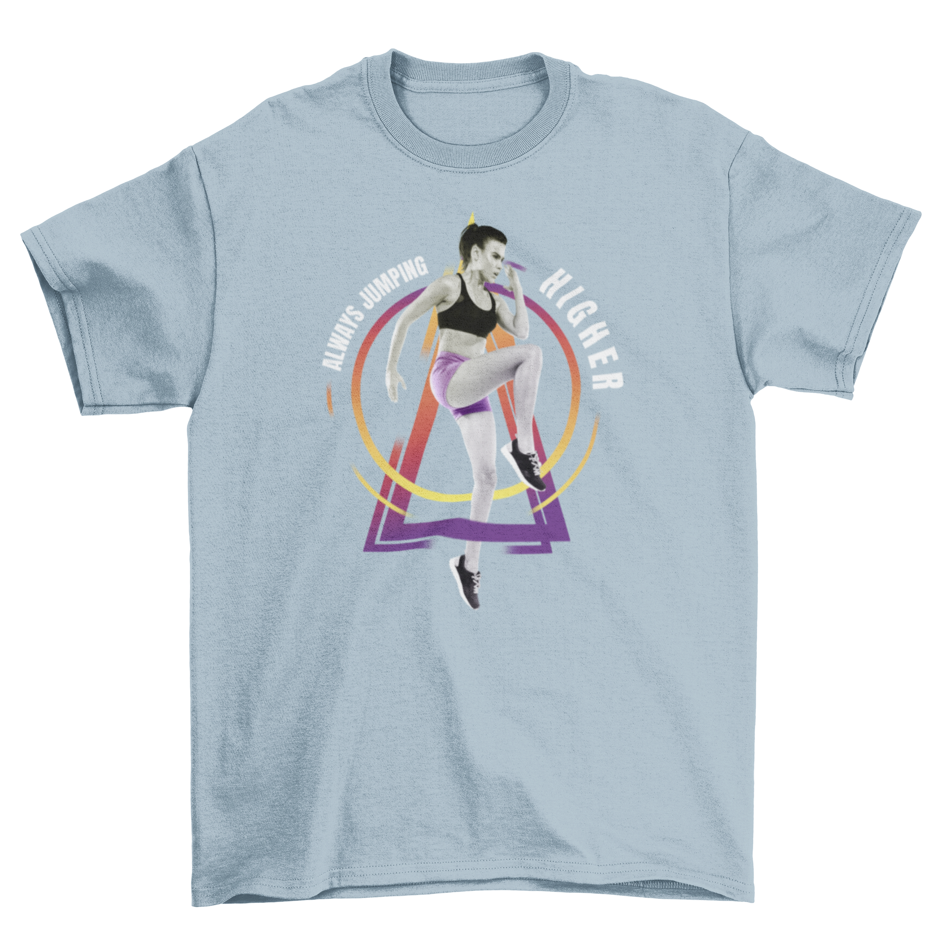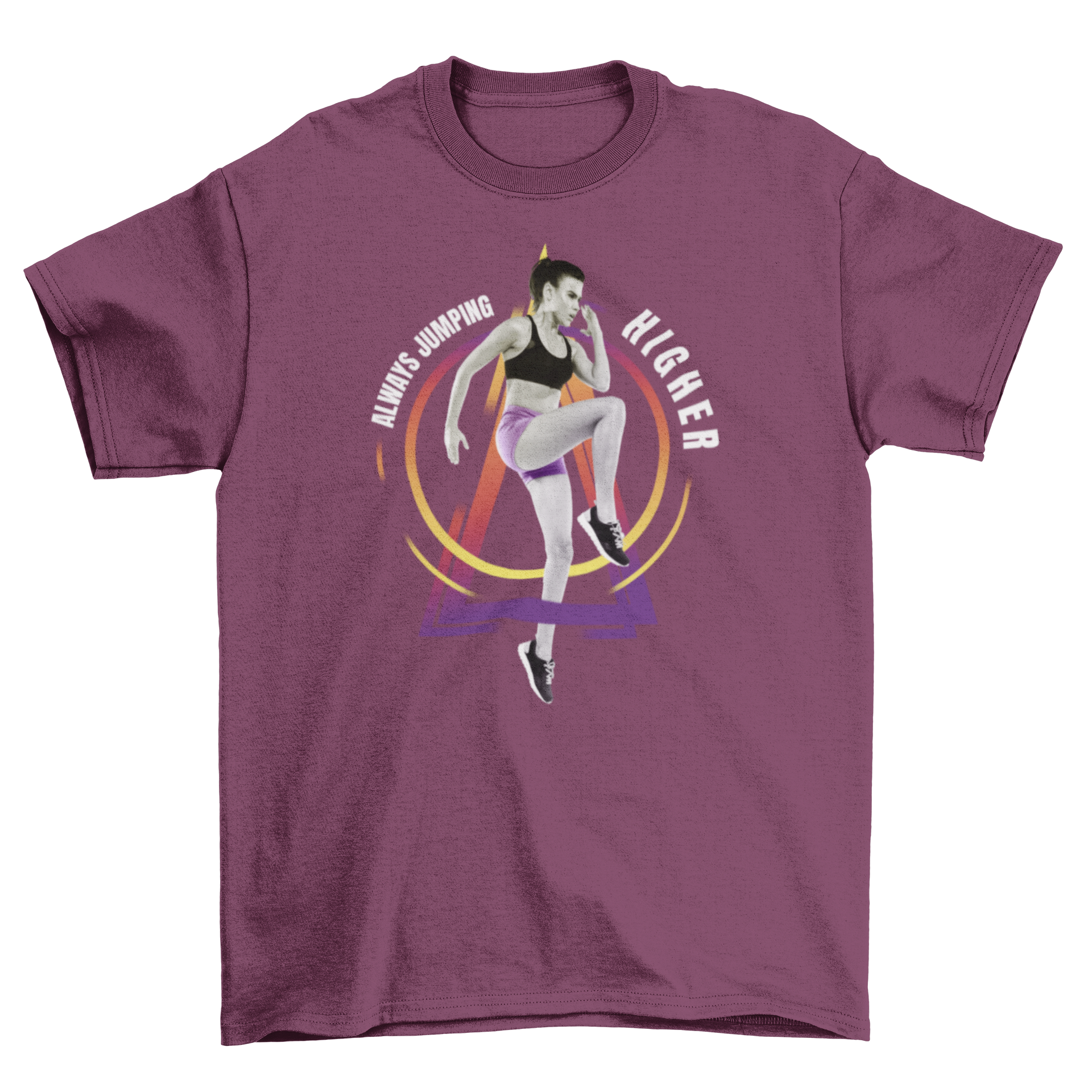The quote, "Always jumping higher," serves as a daily reminder to challenge yourself and reach new heights in your fitness journey. It's not just a t-shirt; it's a statement piece that reflects your dedication to health and wellness. Wear it proudly as you conquer your fitness goals and inspire others to do the same.