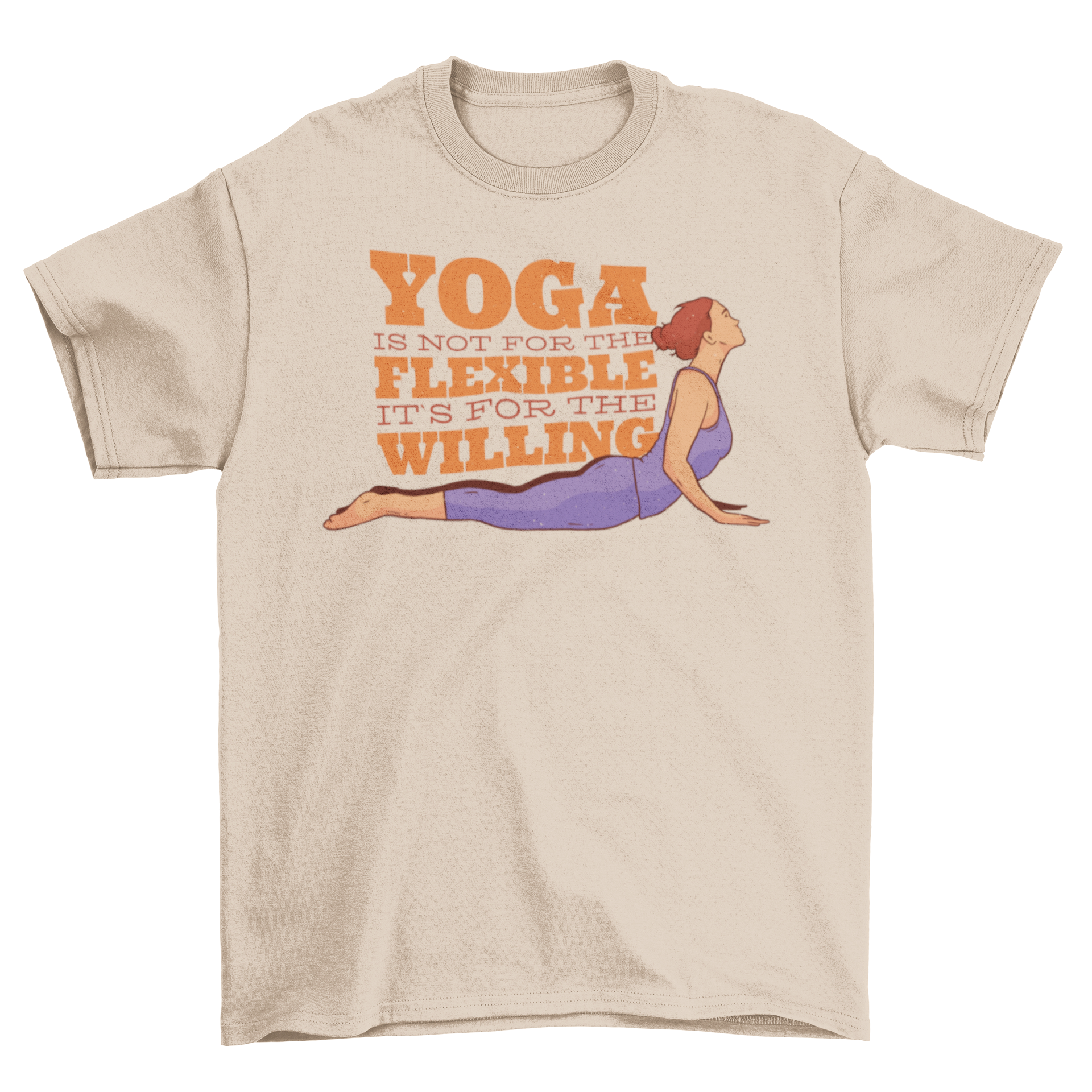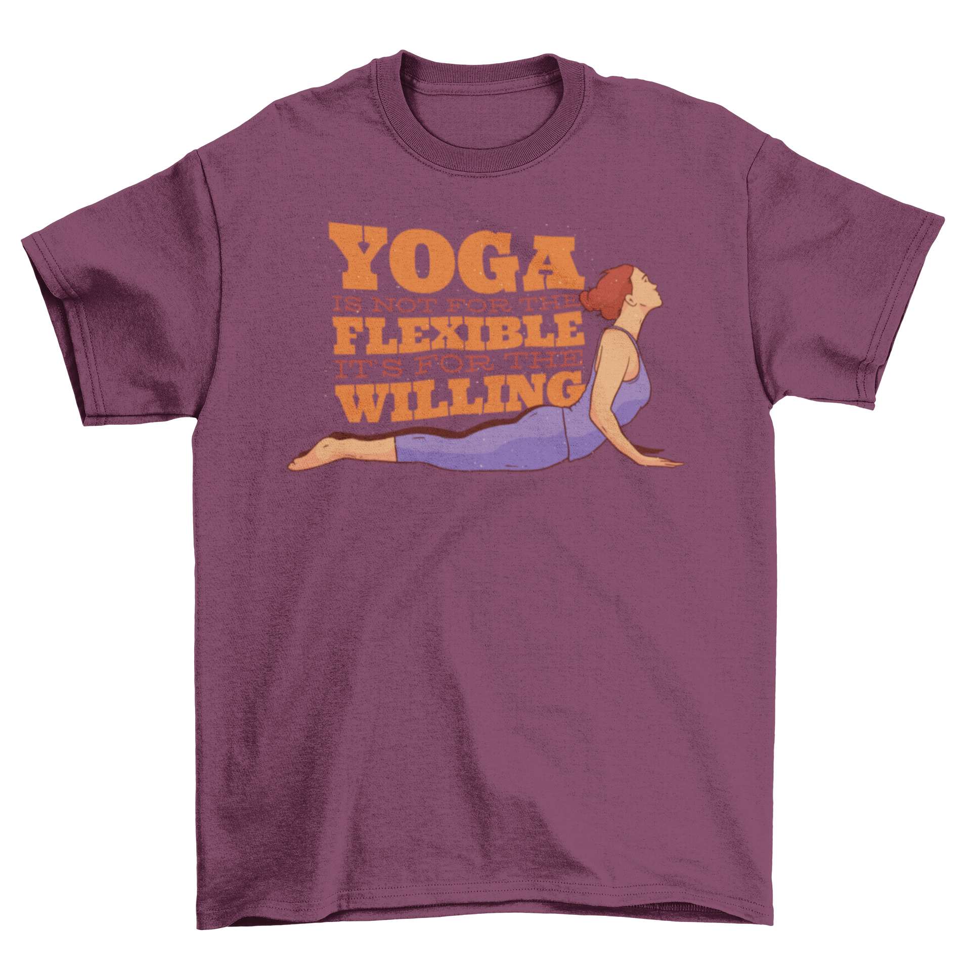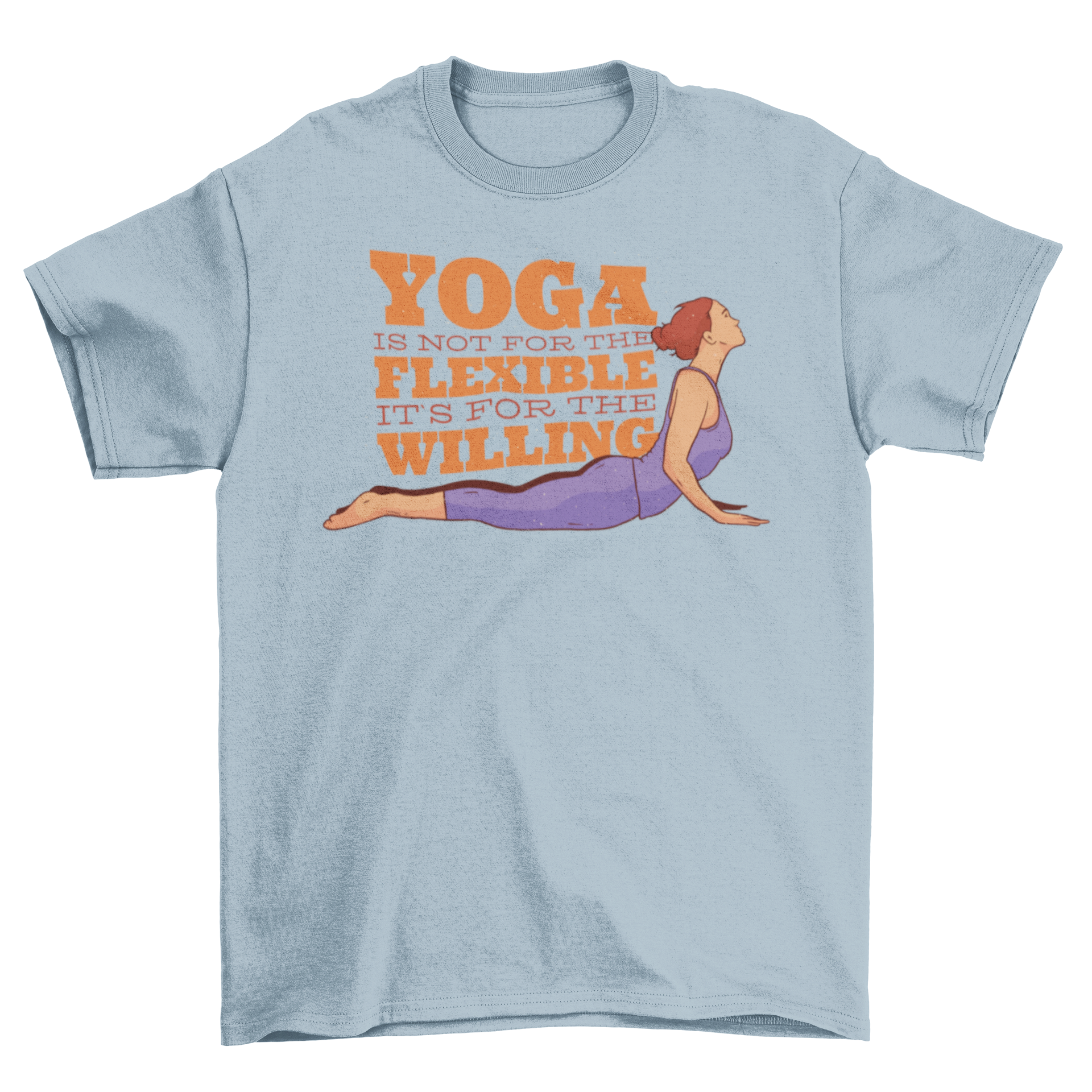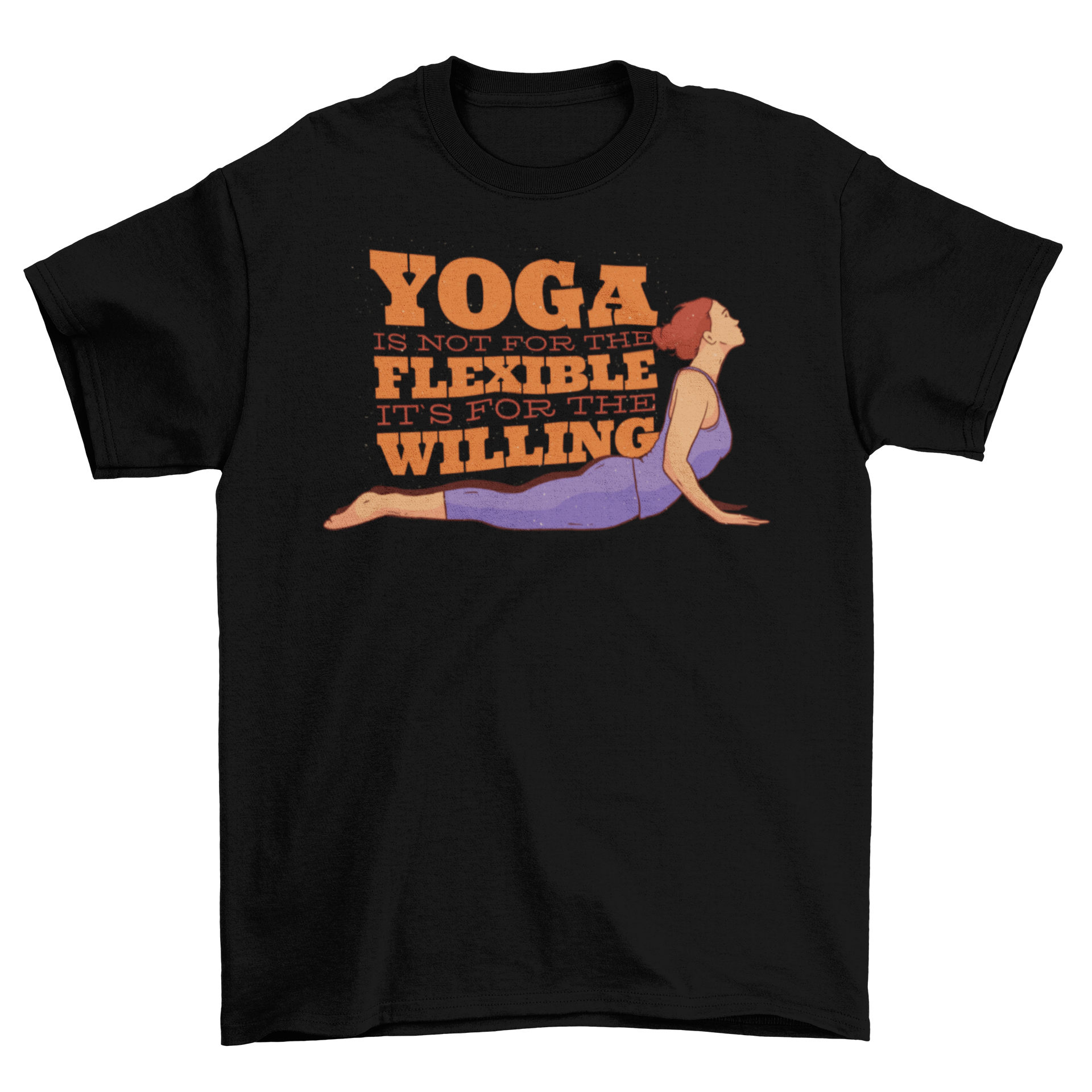 This T-shirt is designed for everyone who believes in the power of yoga. Whether you are a beginner or an experienced yogi, this shirt serves as a reminder that yoga is about the willingness to grow and learn, not just about flexibility. It’s a great conversation starter and a way to express your passion for yoga.