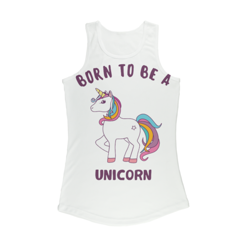 Born to be a Unicorn Women Performance Tank Top in a stylish girlie fit with racer back design, showcasing its vibrant color and comfortable fabric.