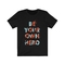 Be Your Own Hero Lettering T-Shirt in soft cotton, featuring bold vinyl print, unisex design, and retail fit.