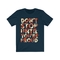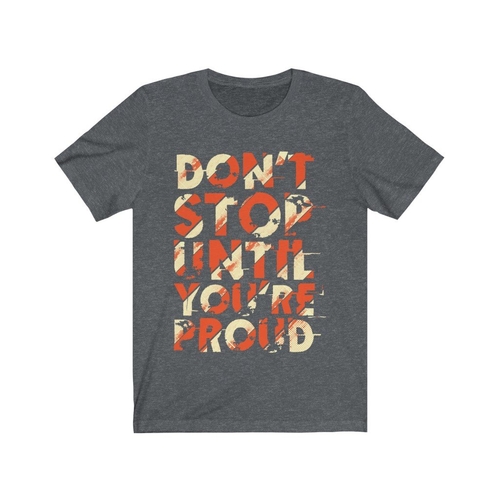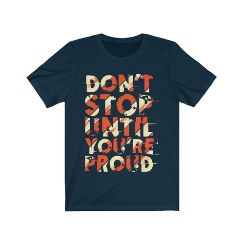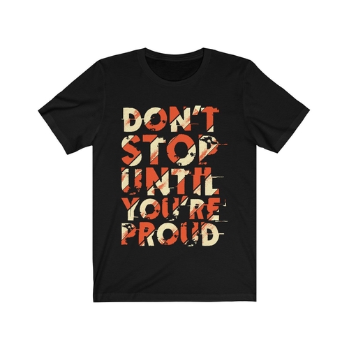 The standout feature of this t-shirt is its inspirational typography print. The phrase “Don't Stop Until You Are Proud” serves as a powerful reminder to keep pushing towards your goals. This motivational quote is perfect for anyone looking to stay inspired and focused on their journey, making it a great gift for friends and family.