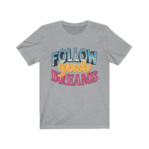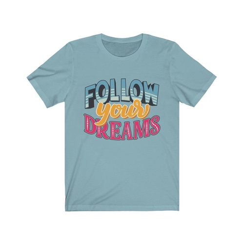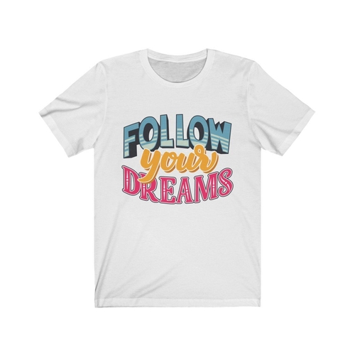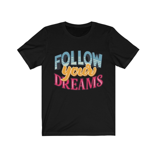 In summary, the Follow Your Dreams Lettering T-Shirt is more than just a piece of clothing; it's a statement of intent. Wear it proudly and inspire those around you to follow their dreams as well. With its comfortable fit, durable print, and stylish design, this t-shirt is a must-have for anyone looking to express themselves.