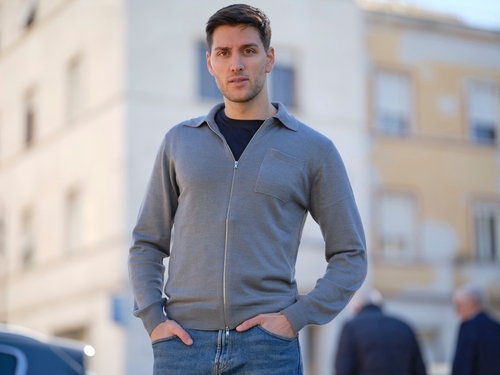 La Giacca Uomo Misto Cashmere, Seta, Lana Merino Extrafine con chiusura Zip è un capo d'abbigliamento che unisce eleganza e comfort. Realizzata con un mix pregiato di tessuti naturali, questa giacca è ideale per chi cerca un look raffinato senza rinunciare alla comodità. La combinazione di cashmere, seta e lana merino extrafine offre una sensazione di morbidezza sulla pelle, rendendola perfetta per ogni stagione.