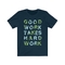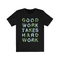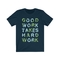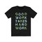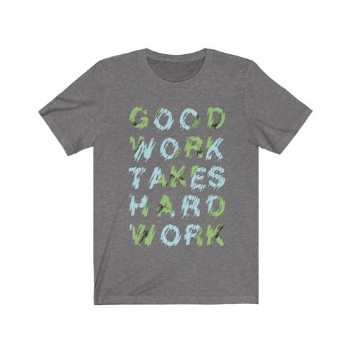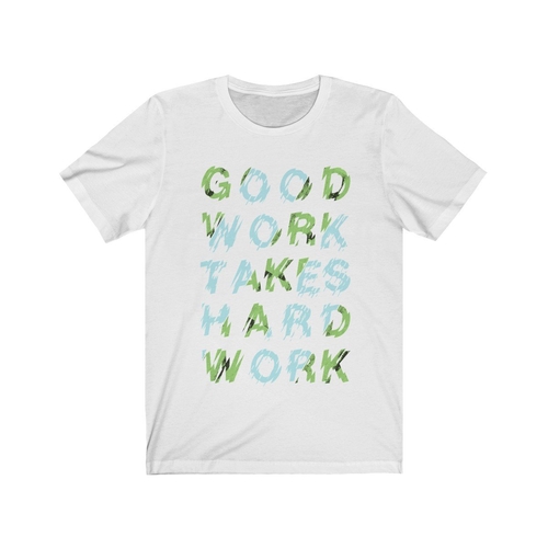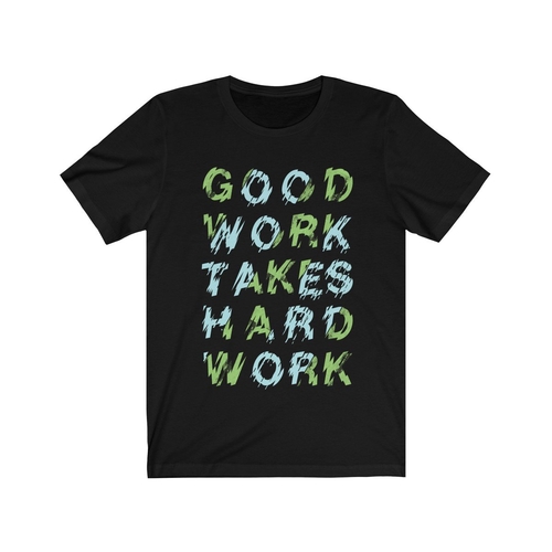 Overall, the 'Good Work Takes Hard Work' t-shirt is more than just a piece of clothing; it’s a statement. It embodies the spirit of perseverance and dedication, making it a must-have for anyone who believes in the power of hard work. Add this versatile and stylish t-shirt to your collection today and wear it with pride!