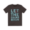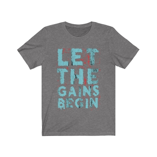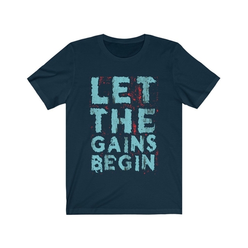 Show off your dedication to fitness with this stylish t-shirt. The motivational phrase “Let the Gains Begin” serves as a reminder to stay focused on your fitness goals. Whether you're lifting weights, doing cardio, or simply enjoying a day out, this shirt is a great way to express your passion for health and wellness.