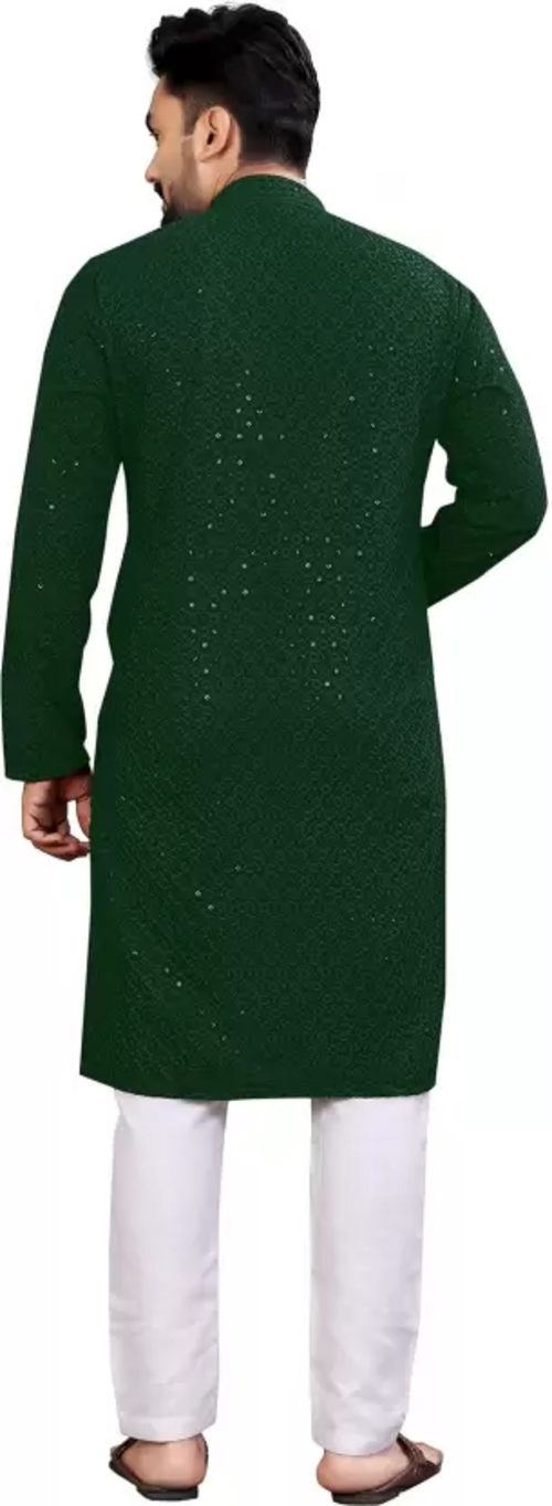Dropship Men Embroidered Cotton Rayon A-line Kurta (Green) (Size UK 40)