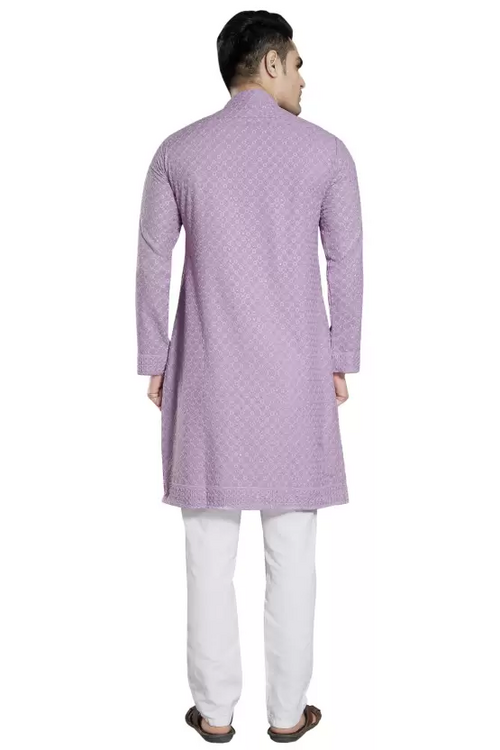 Dropship Men Embroidered Cotton Rayon A-line Kurta (Purple) (Size UK 36)