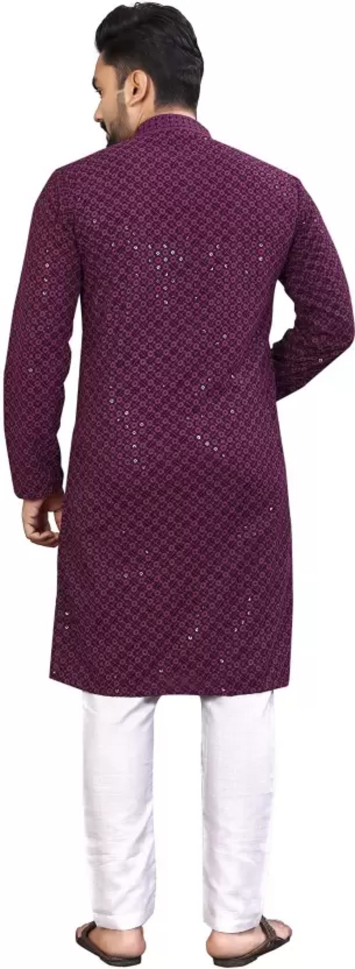 Dropship Men Embroidered Cotton Rayon A-line Kurta (Purple) (Size UK 36)