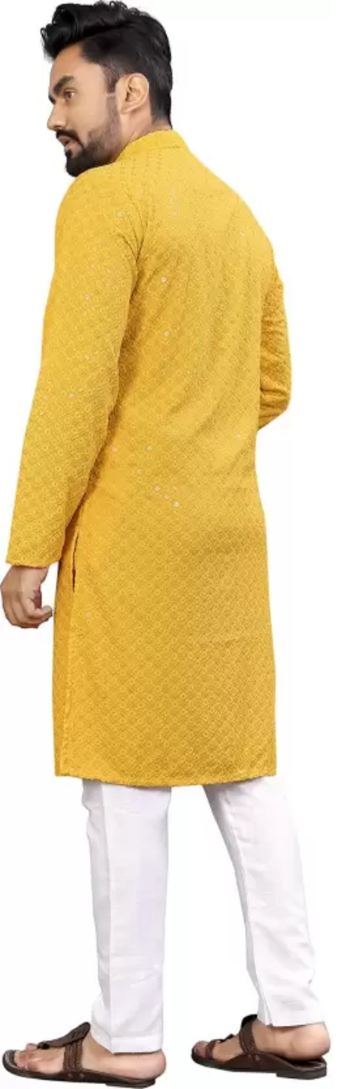 Men Embroidered Cotton Rayon A-line Kurta  (Yellow) (Size UK 36)