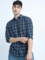 A timeless navy blue collared shirt that adds sophistication to any casual ensemble.