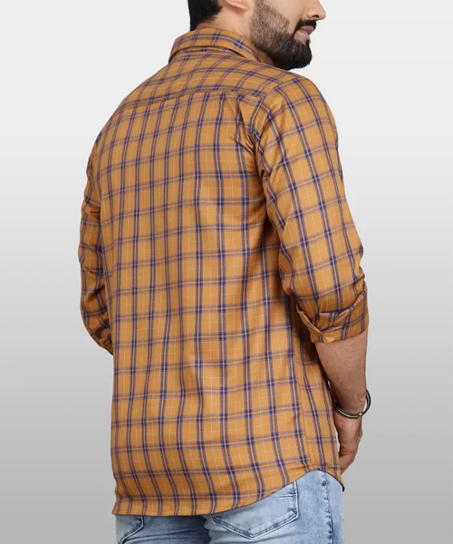 Men Regular Fit Checkered Spread Collar Casual Shirt Mustard (Size XL)