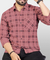Men Regular Fit Checkered Spread Collar Casual Shirt Peach (Size S)