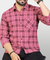 Men Regular Fit Checkered Spread Collar Casual Shirt Pink (Size S)
