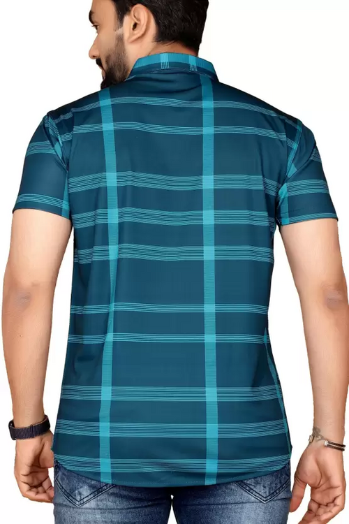Dropship Men Regular Fit Checkered Spread Collar Casual Shirt Teal (Size XL)