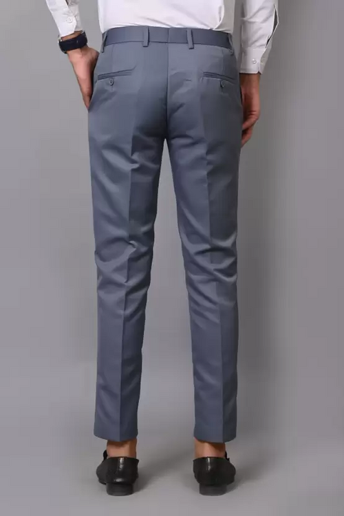 Men Regular Fit Grey Cotton Blend Trousers (Size XL)
