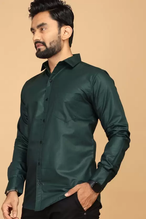 Dropship Men Regular Fit Solid Casual Shirt Dark Green (Size L)