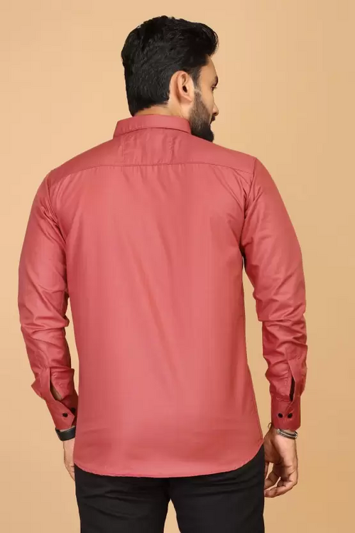Men Regular Fit Solid Casual Shirt Pink (Size L)