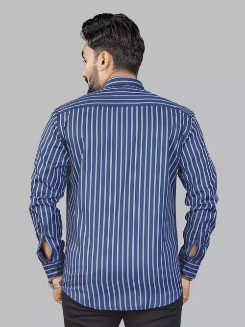 Dropship Men Regular Fit Striped Spread Collar Formal Shirt Dark Blue (Size XL)