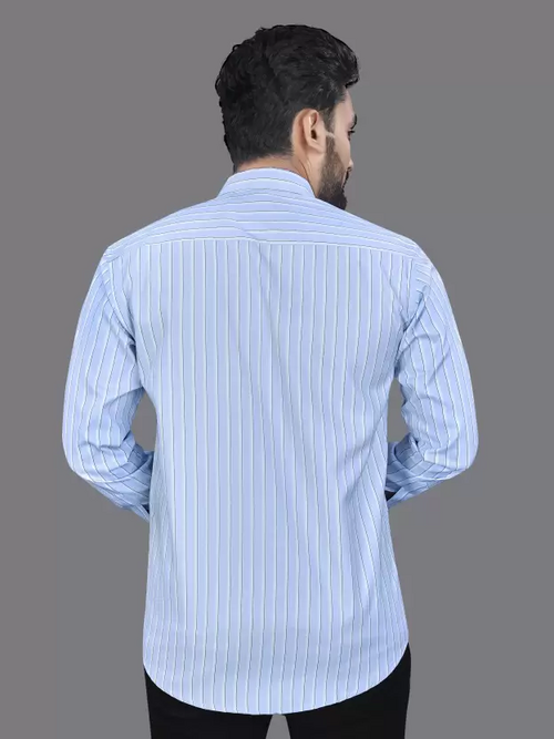 Dropship Men Regular Fit Striped Spread Collar Formal Shirt Light Blue (Size L)