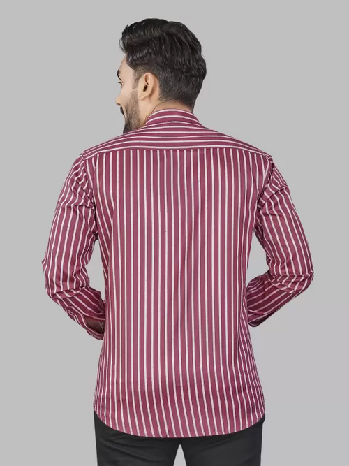 Men Regular Fit Striped Spread Collar Formal Shirt Maroon (Size L)