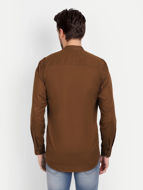 Dropship Men Regular Fit Washed Casual Shirt Brown Size M