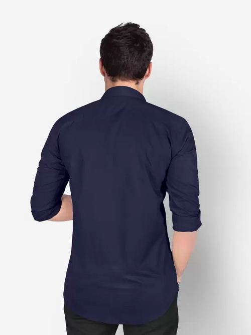 Dropship Men Regular Fit Washed Casual Shirt Dark Blue Size M