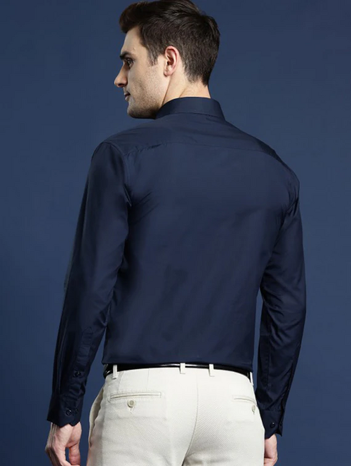 Dropship Men Regular Fit Washed Casual Shirt Dark Blue Size Xl