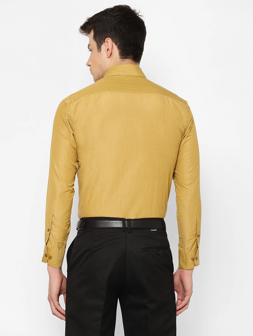 Men Regular Fit Washed Casual Shirt Golden Size L