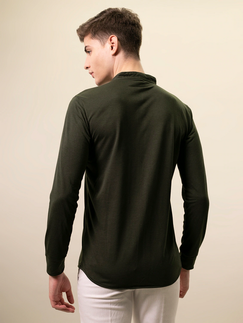 Dropship Men Regular Fit Washed Casual Shirt Olive Size L