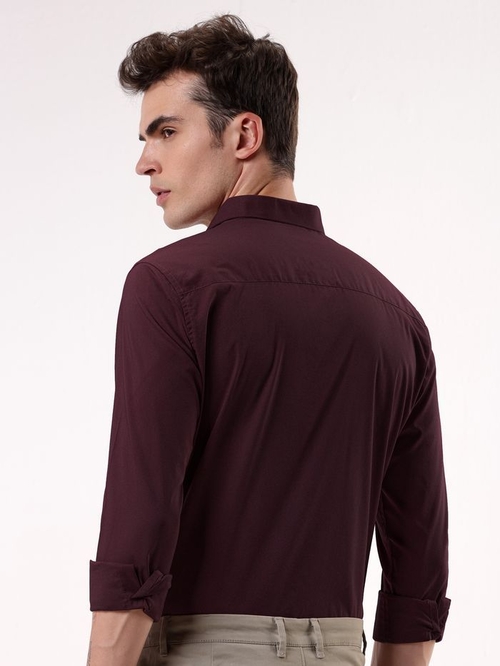 Men Slim Fit Solid Dark Maroon Formal Shirt (Size XL)