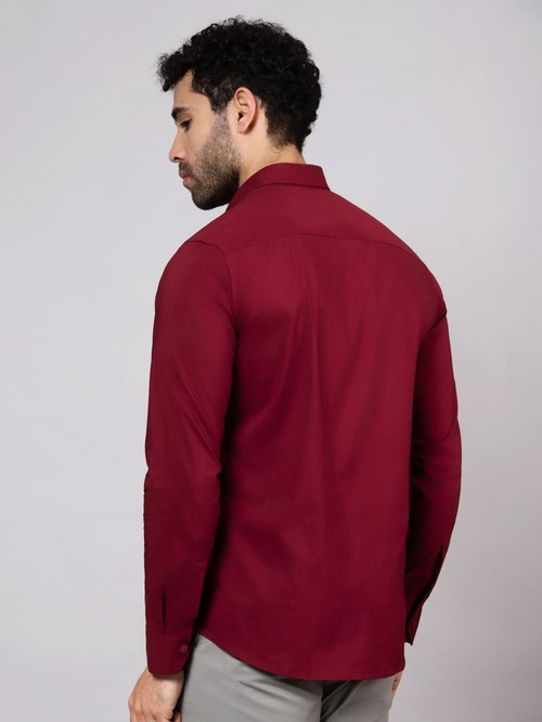 Men Slim Fit Solid Red Formal Shirt (Size L)