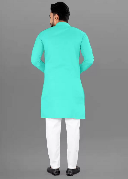 Men Solid Cotton Blend Straight Kurta  (Light Green) (Size UK 40)
