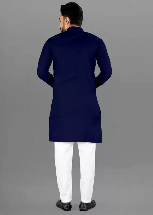 Dropship Men Solid Cotton Blend Straight Kurta (Navy Blue) (Size UK 40)