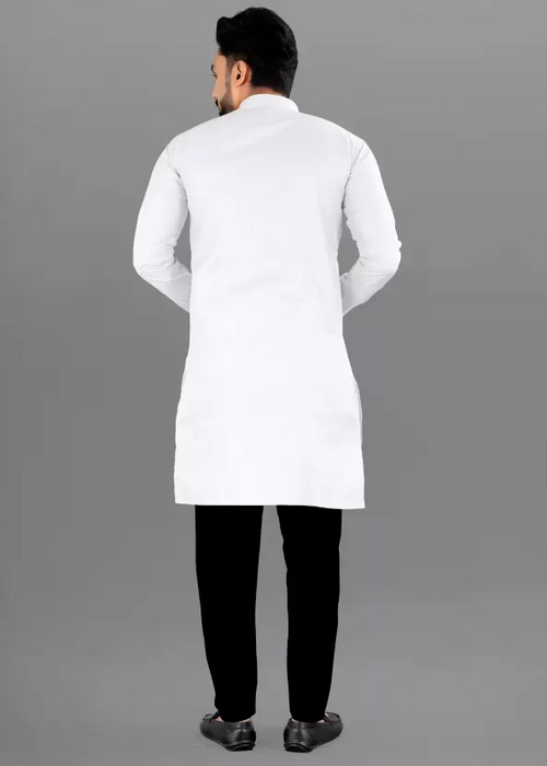 Men Solid Cotton Blend Straight Kurta  (White) (Size UK 34)