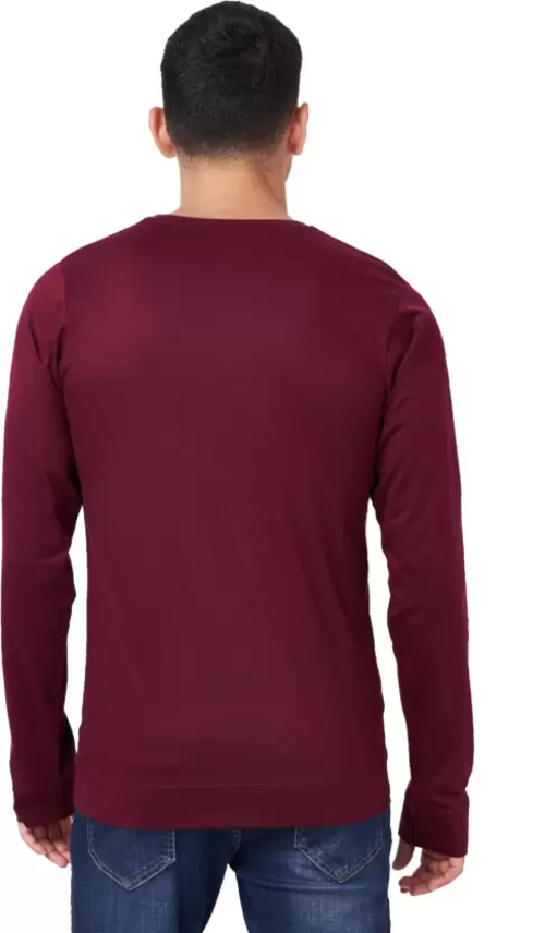 Men Solid Full Sleeves Round Neck Cotton Maroon T-Shirt (Size M)