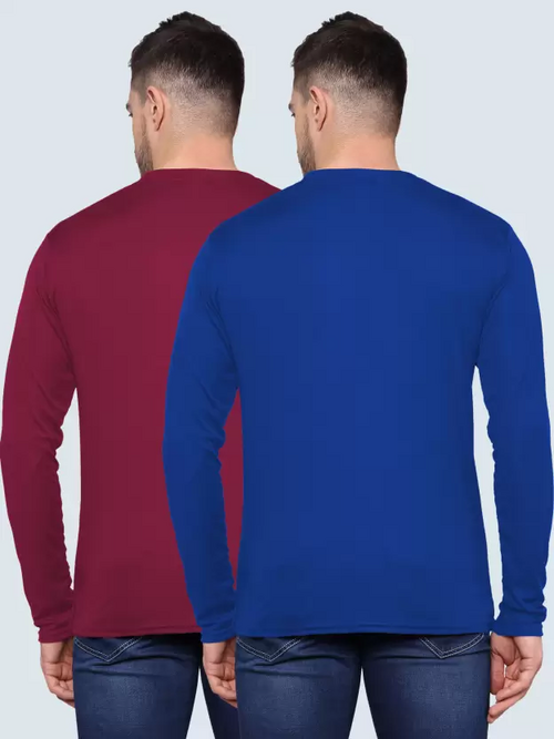 This men's solid full sleeves round neck polyester T-shirt offers durability and comfort for everyday wear. Made from polyester, it provides a lightweight and breathable feel, making it suitable for various activities and weather conditions. The solid color design adds versatility, allowing it to be easily paired with jeans or shorts for a casual look or layered under a jacket for cooler days. Ideal for active lifestyles or casual outings, this T-shirt combines style with functionality, ensuring comfort throughout the day.