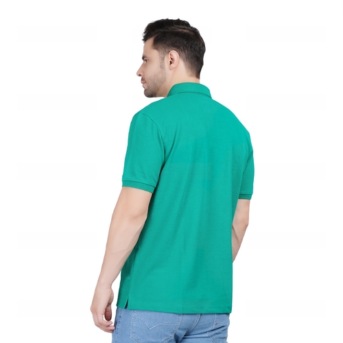 Men Solid Polo Neck Cotton Green T-Shirt (Size XL)