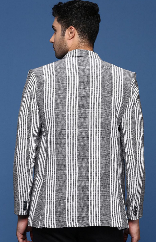 Men’s Striped Slim-Fit Notched Lapel Single-Breasted Cotton Blazer. Crafted from breathable cotton, this blazer combines comfort with a sleek, tailored fit, making it perfect for both professional and casual occasions. The classic notched lapel and single-breasted design create a timeless silhouette, while the subtle striped pattern adds a contemporary touch. Ideal for pairing with dress shirts or smart casual attire, this blazer is versatile enough to elevate any outfit. Whether you're heading to the office or a dinner date, this piece ensures you look sharp and stylish with every wear.