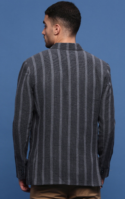Men’s Striped Slim-Fit Notched Lapel Single-Breasted Cotton Blazer. Crafted from breathable cotton, this blazer combines comfort with a sleek, tailored fit, making it perfect for both professional and casual occasions. The classic notched lapel and single-breasted design create a timeless silhouette, while the subtle striped pattern adds a contemporary touch. Ideal for pairing with dress shirts or smart casual attire, this blazer is versatile enough to elevate any outfit. Whether you're heading to the office or a dinner date, this piece ensures you look sharp and stylish with every wear.