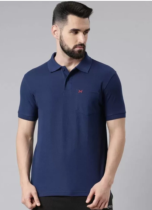 Dropship Navy Blue Cotton Polo Tshirt With Pocket