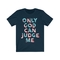 The 'Only God Can Judge Me' t-shirt is a statement piece that combines comfort and style. This unisex essential is designed to fit like a well-loved favorite, making it a must-have addition to your wardrobe. Crafted from 100% soft cotton, this t-shirt offers a luxurious feel against the skin, ensuring that you stay comfortable throughout the day.