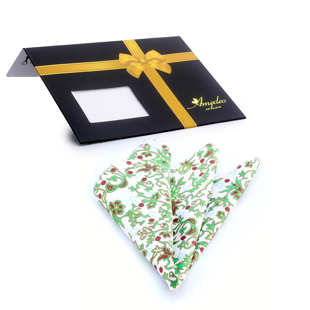 To keep your pocket square looking its best, we recommend dry cleaning or hand washing it in cold water with a mild detergent. If necessary, you can cool iron it to remove any wrinkles. The pocket square comes packaged in a protective Amedeo bag, ensuring it stays in pristine condition until you're ready to wear it.