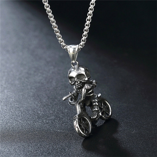 This necklace is a versatile accessory that can enhance any outfit. Whether you're dressing up for a night out or looking for a casual piece to wear during the day, the Skeleton on a Bike Necklace fits the bill. Its unique design makes it a conversation starter, allowing you to express your individuality and style.