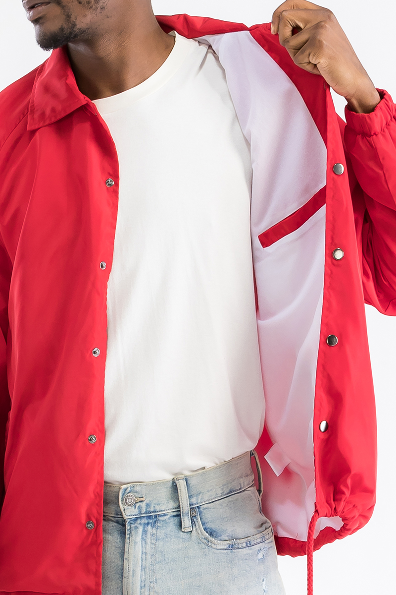 With its sleek and modern design, the Solid Coachs Jacket is not just practical but also a fashionable choice. The snap button closure adds a touch of sophistication while making it easy to put on and take off. This jacket is versatile enough to pair with various outfits, making it a staple in your wardrobe.