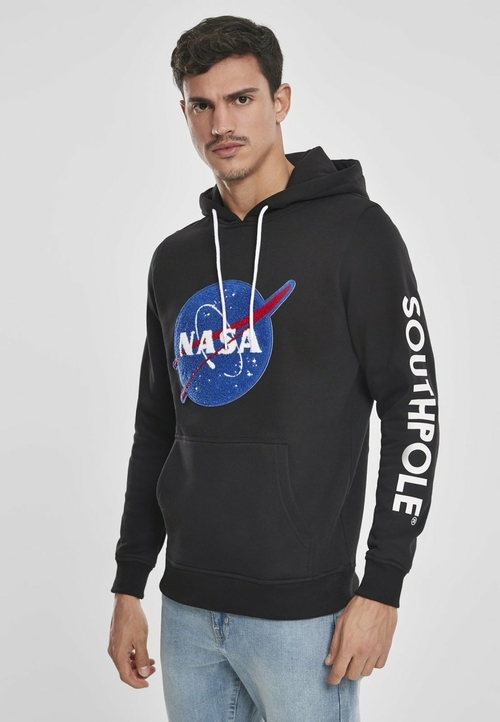 This hoodie stands out with its elaborate chenille application showcasing the iconic NASA logo on the front. The addition of the Southpole logo on the left sleeve adds an extra touch of style, making it a must-have for any fashion-forward individual. The combination of these logos not only represents a love for space exploration but also makes a bold fashion statement.